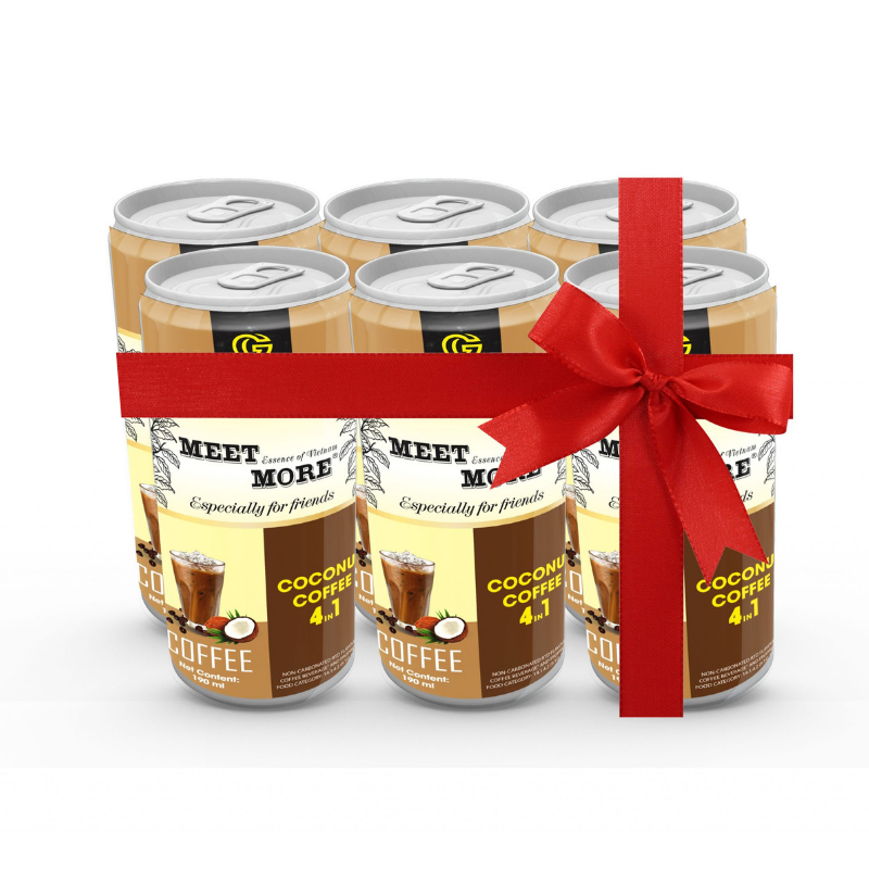 Cà phê dừa Meet More là sự “gặp gỡ” đầy tinh tế của dừa và cà phê. Từ những quả cà phê chín mọng, được lọc chọn nghiêm ngặt, kỹ càng. Trải qua công đoạn rang, xay, nghiền, sấy với công nghệ từ Malaysia kết hợp cùng tinh chất cốt dừa cô đặc từ thiên nhiên mang lại hương vị đặc biệt. Chinh phục mọi phong cách thưởng thức ngay cả những người khó uống được riêng vị cà phê.