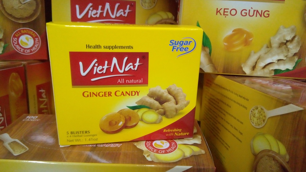Đặc biệt KẸO GỪNG VIETNAT giảm nôn do say tàu xe và các triệu chứng ăn không tiêu, đầy hơi, ợ chua, giảm nôn cho phụ nữ mang thai trong 3 tháng đầu.